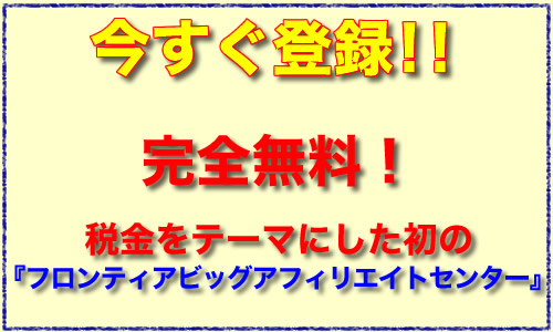 フロンティアのアフィリエイトでは、テーマが税金という他が真似できない商材です。納税は国民の義務でありますが、今までこの分野での商材を多く見かけま せん。見かけても単なる節税対策などという机上のものです。あなたに取り扱ってもらう商材は、他では真似できない希少な商材で既に明確に差別化をしている 上、専門分野ということで品質においても申し分ないものだと言えます。そして、税理士事務所が実際に行いますので、信頼性の高いといえるでしょう。そのた め、間違っても紹介することで不利益を与えることはいたしません。しかも、これらの商品を紹介することで、あなたの信頼性を上げることができます。
